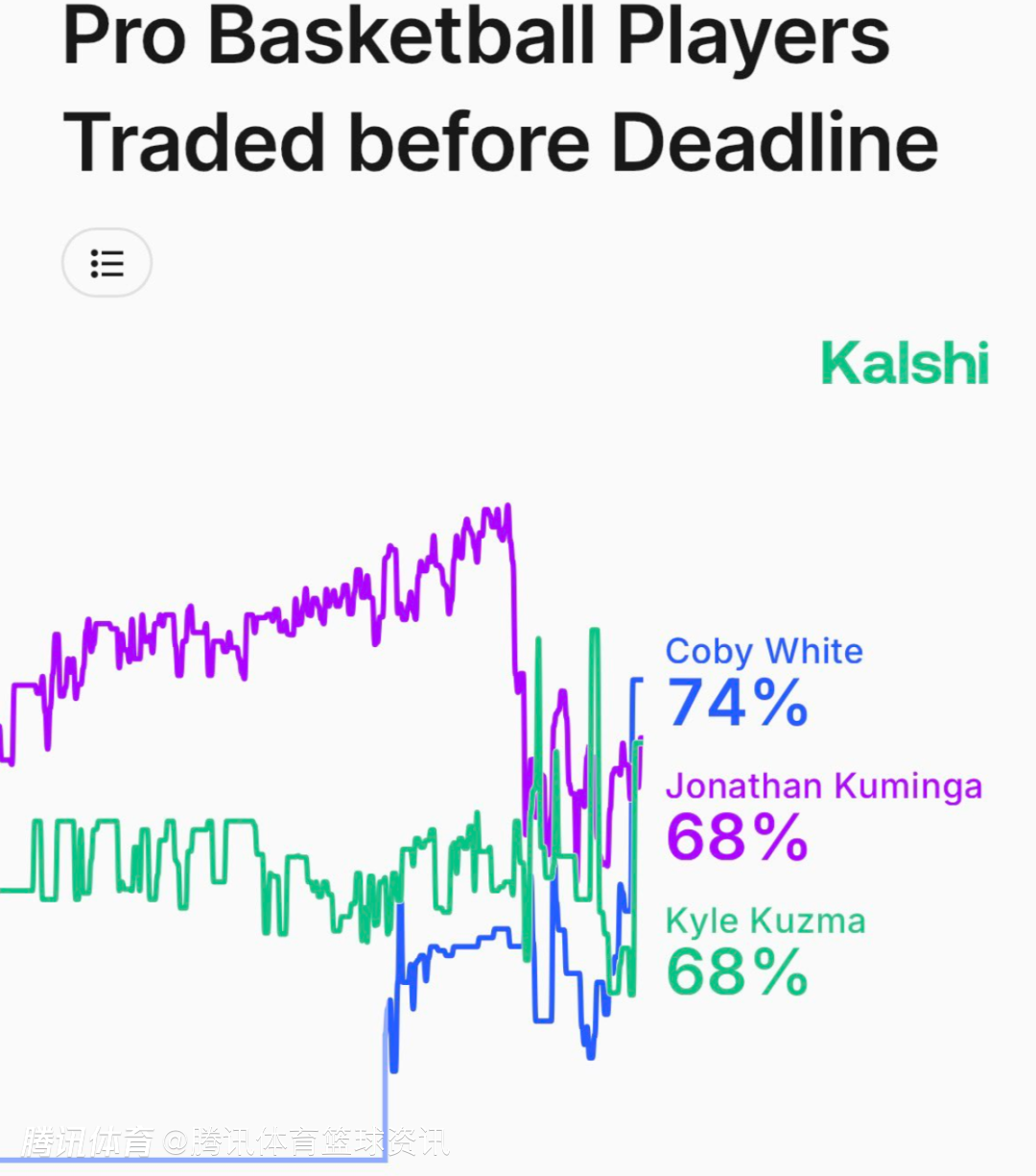 北京时间1月31日,据美记Evan Sidery报道,Kalshi Sports统计了交易截止日前,被交易概率最高的三名球员。