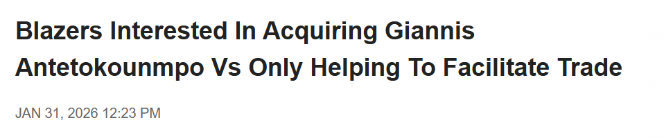 北京时间2月1日,在涉及字母哥的交易谈判中,波特兰开拓者一直被视作潜在的交易推手。不过,开拓者方面已向雄鹿明确表示,球队自身也有意引进这位球星。名记Fischer与Stein报道了相关消息。如果开拓者真的得到字母哥,杨瀚森将成为这位希腊怪兽的新队友。