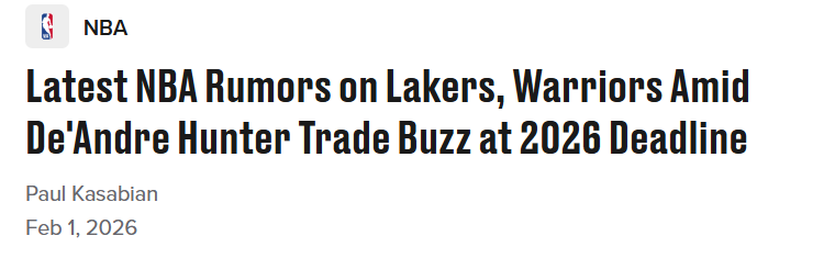 关于湖人方面:“联盟消息人士透露,本周外界对湖人有意亨特的报道实为过度渲染。两队在本次交易窗口期确实有过接触,但紫金军团不愿为吸纳亨特下赛季2490万美元的合同,而损害球队休赛期即将获得的薪资操作灵活性。”