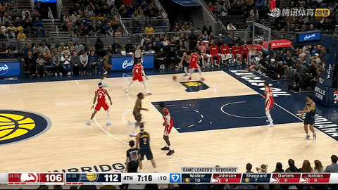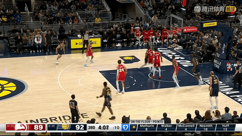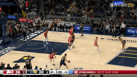 第二节还剩4分39秒到2分40秒,约翰逊迎来高光时刻,他一次突破上篮、一次后仰跳投加一记三分三投全中,把比分从61:60追到68:69,但步行者依靠内史密斯、内姆布哈德等连续得分,在第二节从48:39一路打到71:78完成反超。半场结束,老鹰73:80落后。