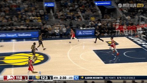 从第一节还剩10分45秒开始到第四节还剩4分09秒,步行者全队命中15记三分球,其中内姆布哈德投中4记、内史密斯和杰-赫夫各投中3记,凭借这波三分火力,步行者在第四节还剩4分09秒时以118-114保持领先并最终赢下比赛。