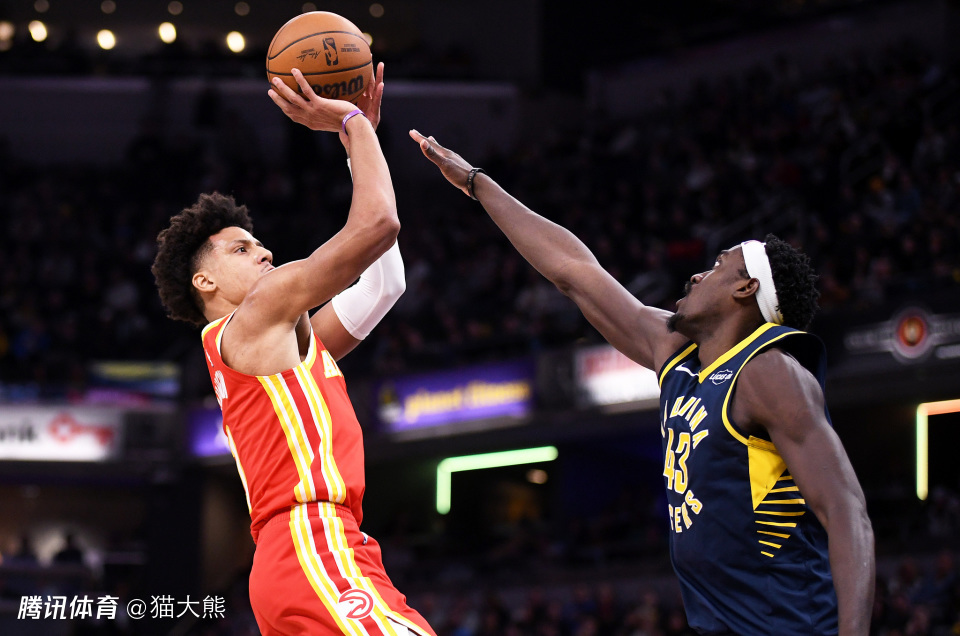 老鹰124-127惜败给步行者,贾伦-约翰逊出战36分钟,29投12中,其中三分球6投3中,空砍33分12篮板10助攻3抢断,他成为老鹰队史首位至少拿到10次三双的球员。