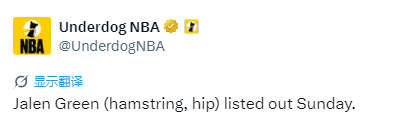 北京时间2月2日,NBA常规赛继续进行,太阳对阵快船。赛前,太阳方面公布本场比赛伤情报告,其中,杰伦-格林(左髋部挫伤、右腿筋伤病管理)降级为确认缺席,此前他被列为出战成疑。