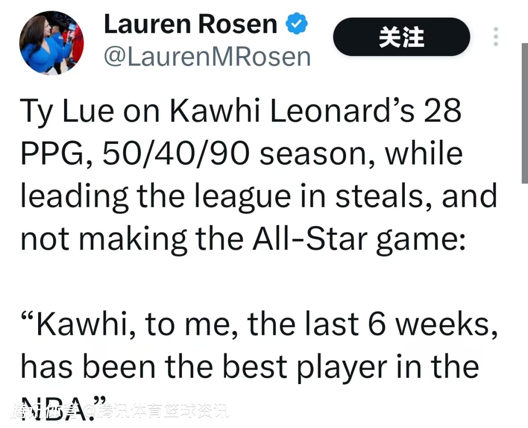 泰伦-卢表示:“说实话,这个结果太让人难以接受了。我当然要恭喜所有入选的球员,他们也都实至名归。但在我看来,过去六周的莱昂纳德,就是联盟里表现最好的球员。他交出了50/40/90的高效数据,场均砍下28分,更是带领球队从开局6胜21负的困境中走出来,走到了如今的位置。看到他落选,真的意难平。我为莱昂纳德感到惋惜,但也为所有入选的球员感到高兴。”