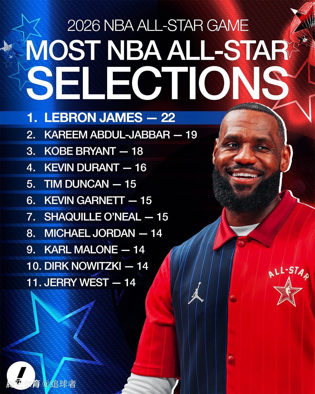 北京时间2月2日,2026年全明星替补阵容出炉,詹姆斯携手杜兰特替补入选,穆雷、鲍威尔等多人首次入选全明星,湖人官方祝贺老詹,詹姆斯发声表示:无比荣幸连续22年入选全明星。