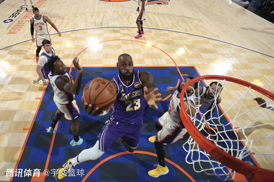 詹姆斯看起来整体下滑比较严重,球队不得不提前将其换下,湖人一度提速打出一波8-0的进攻高潮,无奈球队防守表现过于糟糕,被尼克斯打出一波15-2的进攻高潮还以颜色,詹姆斯回归难以限制对手的三分投射,湖人仍然落后8分进入第四节。