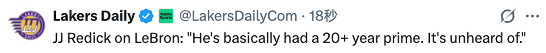 谈到湖人的人员配置、围绕东契奇的建队,以及他认为球队在交易截止日前所处的态势时,雷迪克表示:“我们目前正处在西部季后赛席位的争夺行列中,我认为整个赛季球员们的表现都很出色。他们很好地应对了赛季中难免的起起落落,这在NBA的周期中是自然现象。无论是总经理、教练还是球员,你永远不会看着阵容说'这是完美阵容,所有拼图都严丝合缝'——现实中这种情况很少发生。过去一个多月里,队员们做得非常棒,努力为彼此而战,努力打出团队篮球。”