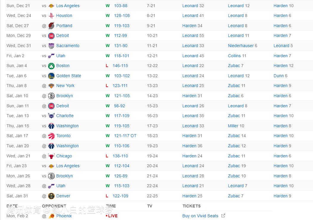 这场比赛对于LAC的同城球队LAL也是好消息,因为湖人在麦迪逊广场花园球馆惨败尼克斯,湖人29胜19负已经跌至西部第七(太阳升至西部第六),但随着快船击败太阳后,太阳战绩30胜20负又掉回西部第七,湖人得利重返西部第六。