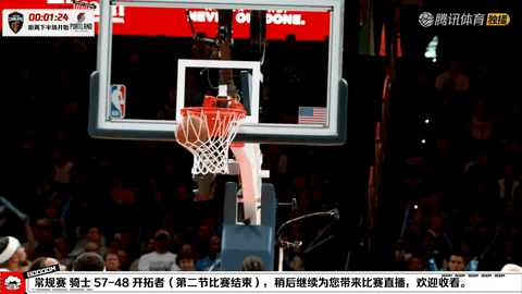 半场结束前,艾伦在第二节还剩5分59秒突破上篮得分,随后在还剩4分46秒时完成跑动扣篮,在还剩2分20秒时补篮命中。至第二节还剩11秒时,他已经拿到25分和10个篮板,帮助骑士在半场以57:48领先。