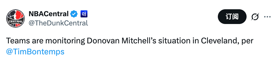 北京时间2月3日,据美记蒂姆-邦坦普斯报道,多支球队正在关注米切尔在骑士的处境。