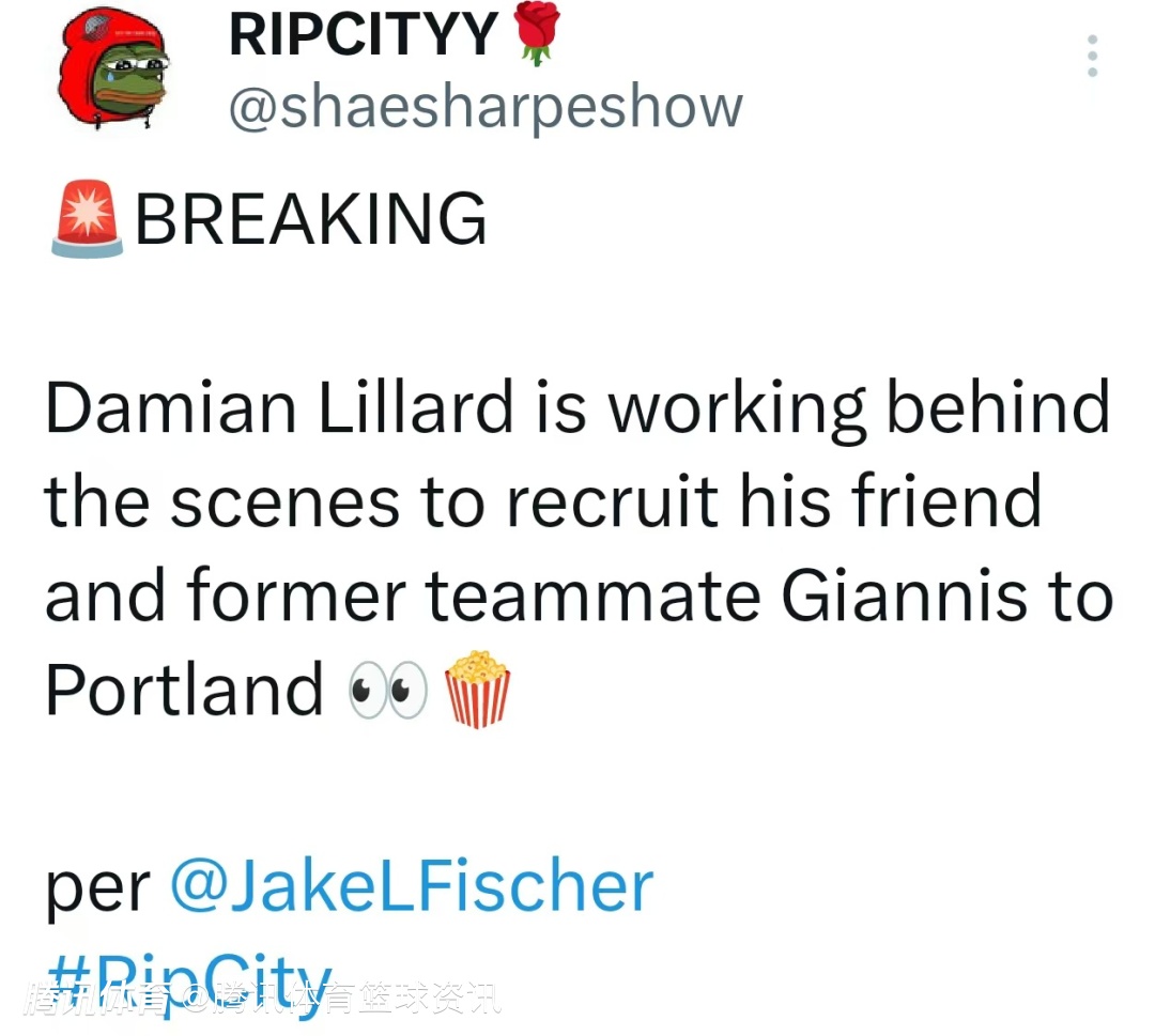 Fischer在露天看台的最新直播节目中重申了这一消息,并进一步透露,曾在雄鹿与字母哥并肩作战的利拉德,正于幕后助力开拓者推动这笔交易。