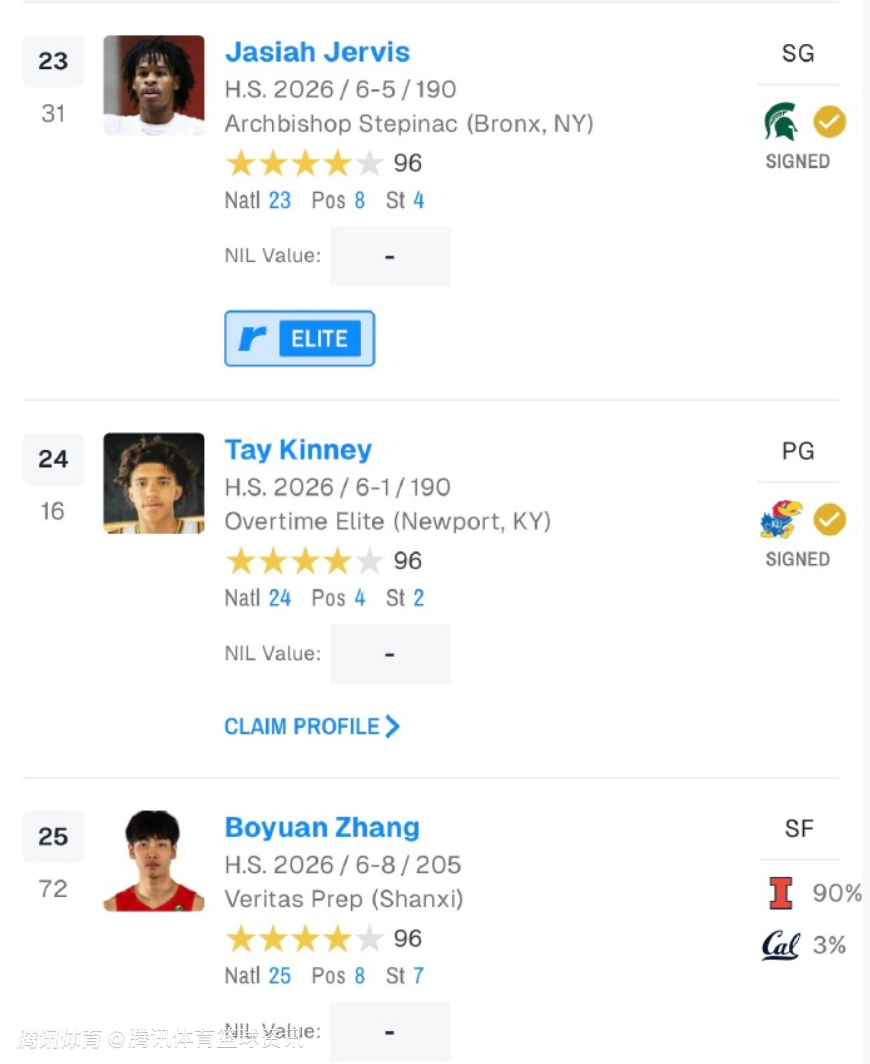 北京时间2月3日,Rivals更新2026届全美高中生排名,张博源排名上升至25位,成为历史上该榜单排名最高的中国球员,郇斯楠排名57位。