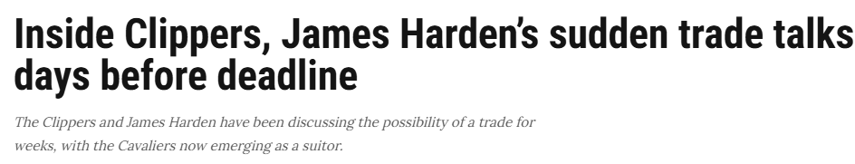 北京时间2月3日,美媒ClutchPoints报道了骑士和快船关于哈登交易谈判的更多内幕,具体如下——