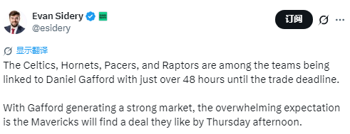 加福德目前交易市场热度极高,外界普遍预计,独行侠会在交易截止日前敲定一笔满意的交易。