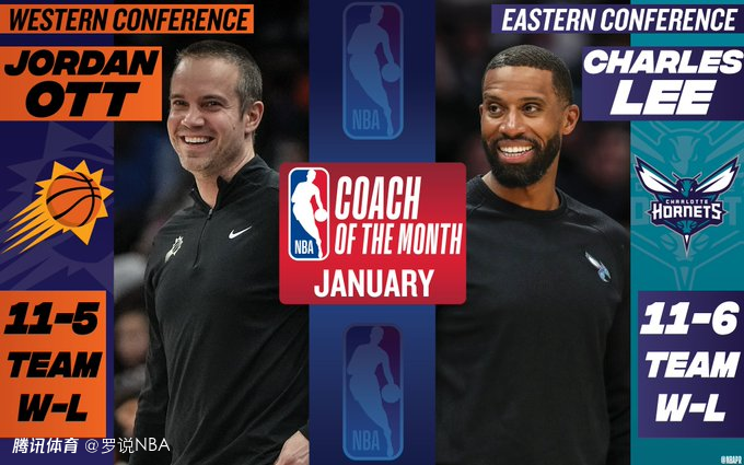 太阳主帅奥特1月战绩11胜5负,黄蜂主帅查尔斯-李1月份战绩11胜6负,分别当选西部和东部的月最佳教练。