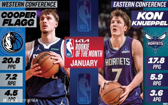 黄蜂的克努佩尔与独行侠的弗拉格分别当选1月东西部月最佳新秀。