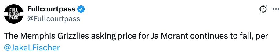 北京时间2月4日,据美记Jake Fischer报道,孟菲斯灰熊队对莫兰特的要价正在持续降低。