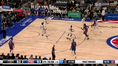 次节回来还剩11分47秒到还剩9分15秒时,掘金连续三次抢到进攻篮板并由哈达威、布朗以及瓦兰丘纳斯的罚球完成得分,但活塞在这段时间内仍将领先优势从5分扩大到9分。