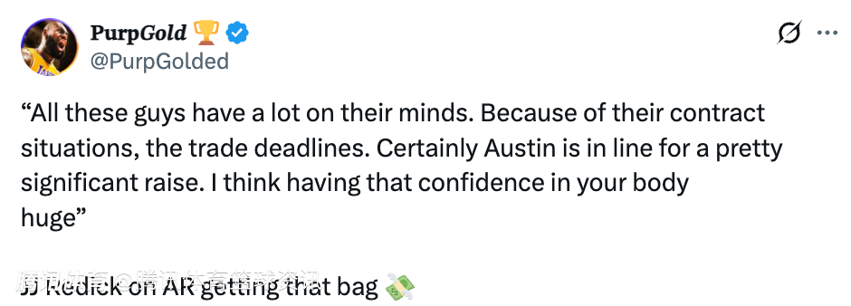 谈及里夫斯将获得大合同,雷迪克表示:“这些球员现在心里都装着很多事。因为他们的合同情况,还有交易截止日的临近。里夫斯显然会得到一份相当可观的加薪。我认为,对自己身体状态有信心这一点,非常重要。”