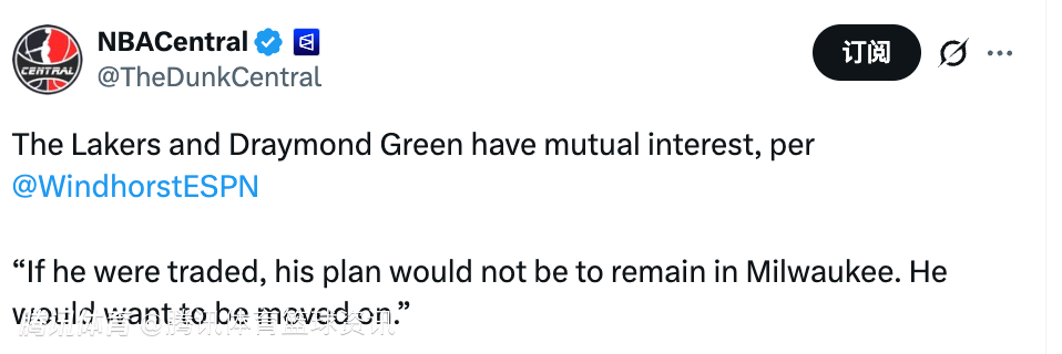 北京时间2月5日,据ESPN名记文霍斯特报道,洛杉矶湖人队与追梦之间存在相互兴趣。如果他在涉及字母哥的交易案中被送走,他的计划不会是留在密尔沃基,而是希望被继续送走。