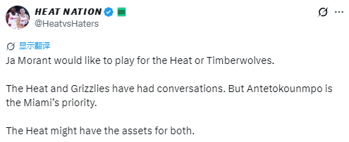 据悉,热火与灰熊已进行过对话,但字母哥是热火的引援首选。但热火手中的交易资产,或许足以同时运作两笔交易。