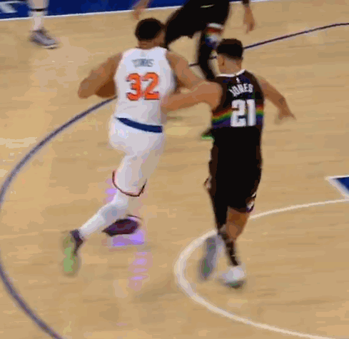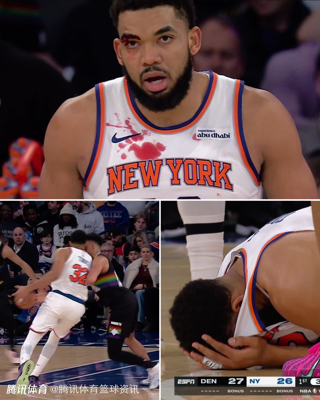 北京时间2月5日,NBA常规赛继续进行,尼克斯对阵掘金。唐斯首发出战。比赛进行过程中,唐斯在突破时对抗斯宾塞-琼斯,与对手头部相撞,右眉骨撞出一道鲜血直流的伤口,看着就像拳击赛里受伤一样。