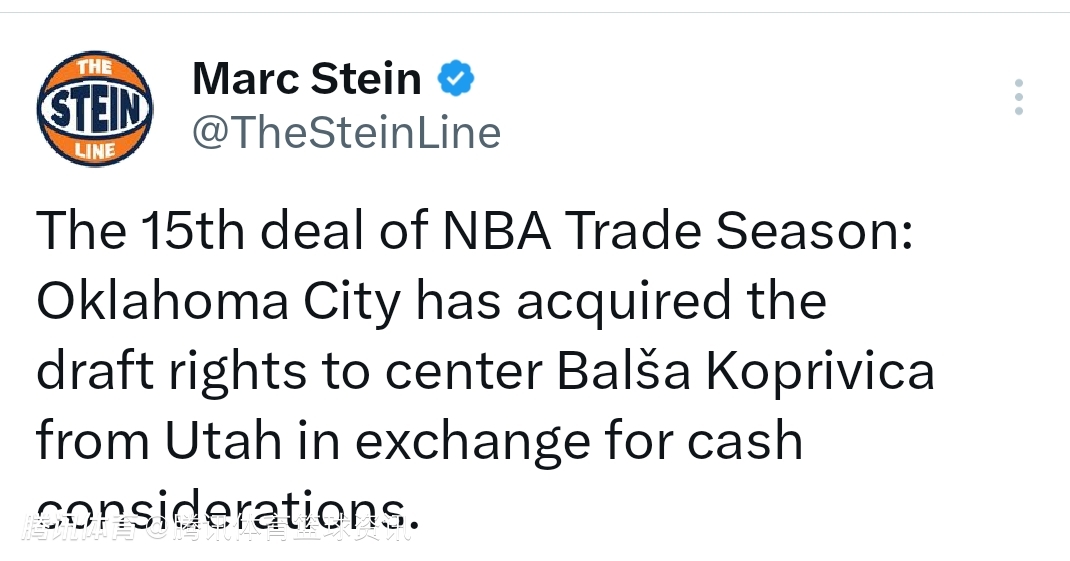 北京时间2月5日,雷霆与爵士完成一笔小交易,雷霆送出现金,得到塞尔维亚中锋科普里维卡的签约权。两队均已发布官方声明宣布交易。