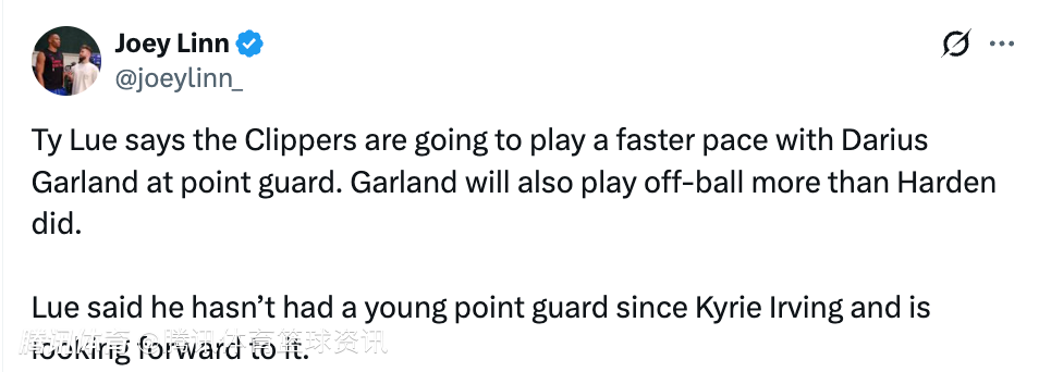 卢表示,队医将会评估加兰的脚趾伤势,之后快船队会对他的首秀时间有更清晰的规划。另外他表示,自己在2019年选秀前就试训过加兰,如今自己终于有机会执教这位年轻的控球后卫了:“我认识加兰有段时间了。”随后他也表示,快船在加兰担任控卫后,比赛节奏将会加快,加兰的无球跑动也会比哈登更多,自己自欧文之后,还没有执教过年轻的后卫,很期待之后发生的事情。