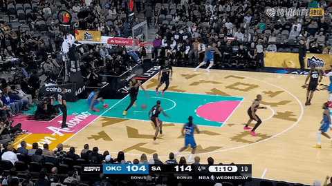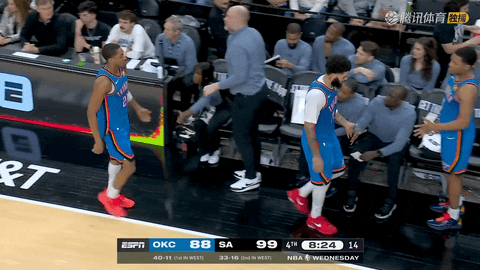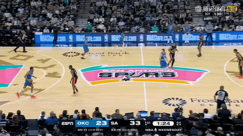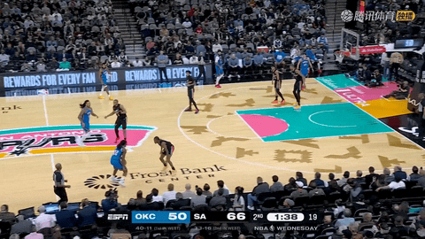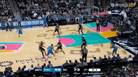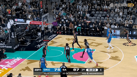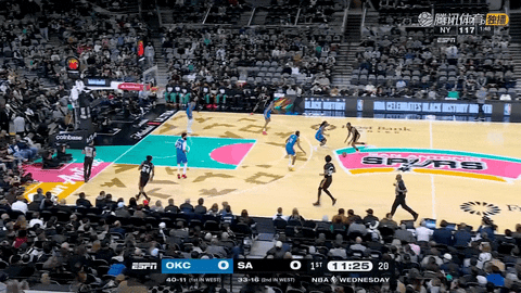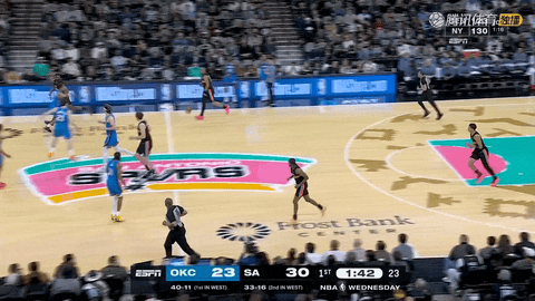 但还剩2分12秒起,布莱恩特连中两记三分,文班亚马在还剩1分12秒再添一记远投,马刺用三记三分把比分从48:63拉到53:69。节末压哨,肯里奇-威廉姆斯跳投命中,将半场比分定格为雷霆58:73马刺。