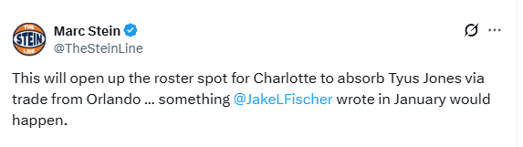 北京时间2月5日,黄蜂官方宣布,球队已裁掉后卫康诺顿。名记Stein表示,此举将为黄蜂腾出阵容名额,以接纳此前从魔术得到的泰鲁斯-琼斯。这正是Jake Fischer在今年1月报道中所预测的交易走向。