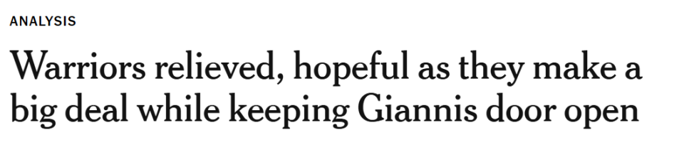 据记者萨姆-阿米克报道,“雄鹿方面近日始终保持沉默,这让勇士以及其他有意的球队都心生疑虑,不确定字母哥是否真的会被摆上货架”。这种疑虑在周三深夜依旧存在,勇士管理层普遍认为,雄鹿似乎并未做好送走这位建队核心的准备。
