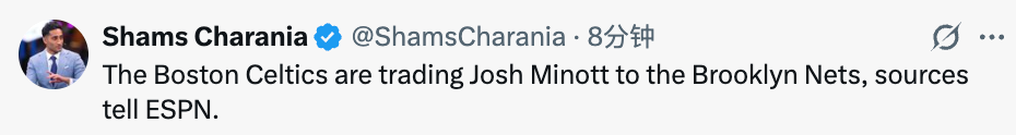 北京时间2月6日,据名记Shams报道,凯尔特人将米诺特交易至篮网。