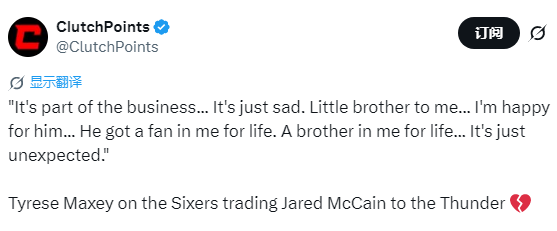 此前,恩比德曾公开呼吁76人队在交易截止日有所行动,他认为球队本赛季真的具备争冠机会。而他们最终只做了一笔操作:将麦凯恩交易至雷霆,只为节省薪资支出。