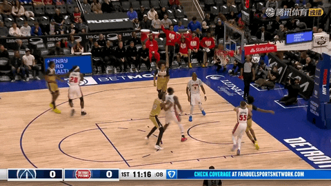 首节结束奇才34:21领先活塞。