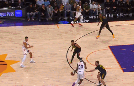 次节勇士队还是依靠三分球在拉开分差,上半场勇士三分37中15,三分命中率高达40%,就三分得分一项勇士就比太阳多24分之多,这也是勇士在上半场反超的关键。梅尔顿10分,斯潘塞15分,桑托斯11分,佩顿10分勇士多点开花,太阳这边还是依靠狄龙与阿伦的进攻,太阳只有这两人上双,半场太阳三分21中7。