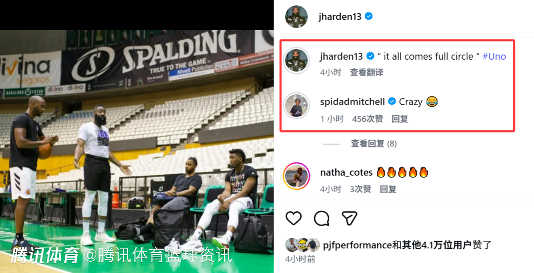 北京时间2月7日,在交易截止日期间来到骑士的哈登更新社媒,晒出2018年与米切尔的特训旧照并配文写道:“一切回到原点!”。米切尔则回复称“这太疯狂了”。