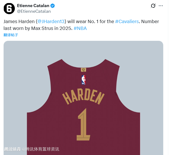 另据球衣名记Etienne Catalan报道,哈登将身披骑士1号战袍,原本的1号球员斯特鲁斯则改穿2 号。生涯至今,哈登曾在雷霆、火箭、篮网身披13号球衣,而在76人、快船,以及即将开启的骑士生涯,均选择身穿1号球衣。