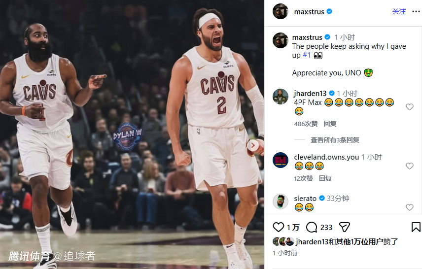究竟哈登将在骑士身穿几号球衣?据报道,哈登将身穿骑士1号球衣开启生涯新篇章,斯特鲁斯让出1号并且改穿2号,之后斯特鲁斯在社媒上晒出哈登身穿骑士1号球衣,自己身穿骑士2号球衣的P照,还晒出当初哈登送给好友30万美元以及名表生日礼物的画面,写道:人们问我为什么放弃1号球衣,感激你,UNO(代表哈登)。