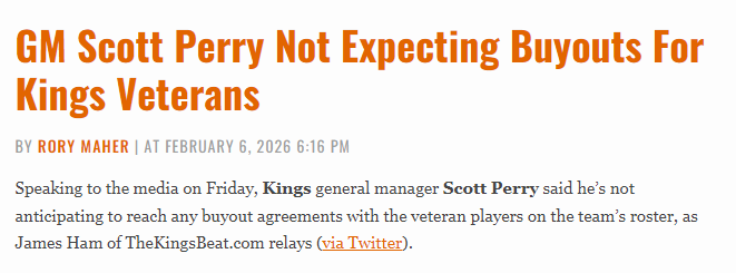 北京时间2月7日,国王队总经理斯科特-佩里在接受媒体采访时表示,不打算与球队阵容中的老将达成任何买断协议。
