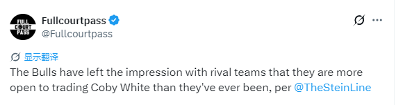 北京时间12月22日,据名记Marc Stein报道,公牛队向其他球队释放出的信号显示,他们目前对于交易科比-怀特的开放程度已达到最高水平。