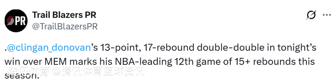 北京时间2月7日,NBA常规赛,开拓者以135-115大胜灰熊,此役克林根发挥出色,拿到两双数据。