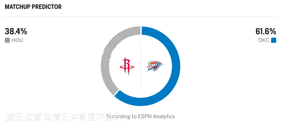雷霆61.6%,火箭38.4%