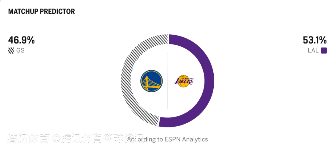 勇士46.9%,湖人53.1%。