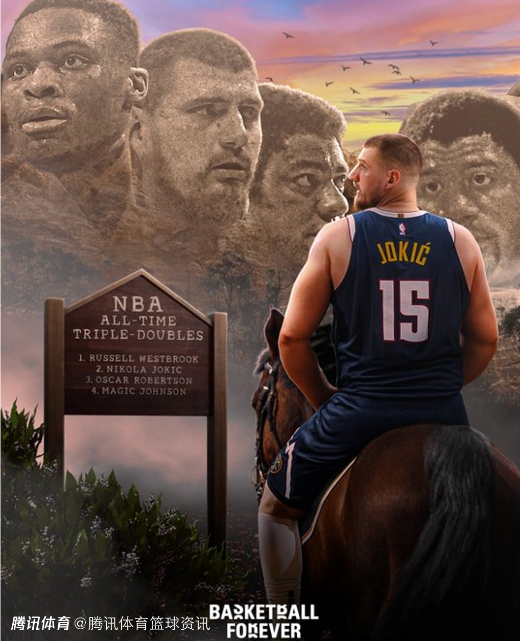 比赛第三节,约基奇助攻卡梅隆-约翰逊扣篮得手,拿到了本场比赛的第10次助攻,达成三双。这样一来,他的生涯常规赛三双数已经来到182次,超越大0,独占历史第二,排在第一位的是他的前队友威少,后者生涯共计拿到207次三双。