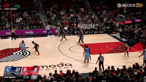 第一节还剩10分02秒时,霍勒迪突破打板勾手投篮命中,开拓者打破僵局取得2-0领先。