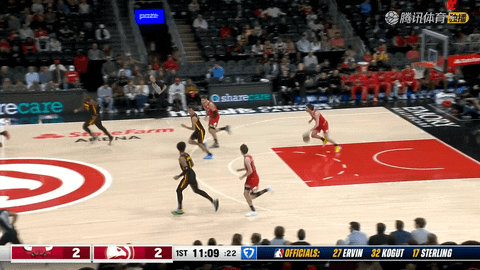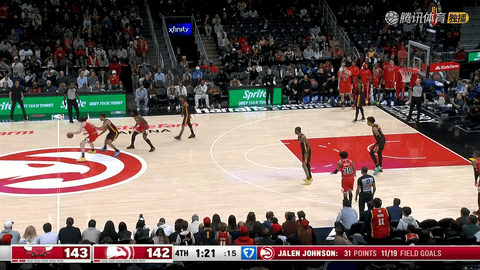 随后在第一节还剩7分57秒到5分31秒时,老鹰由约翰逊、奥孔古和里萨谢轮番得分,将比分从21:10追至25:22。首节末段,第一节还剩1分57秒到55秒时,奥孔古和克雷伊奇连续命中三分,老鹰在1分钟内把比分从34:29反超到34:35。但在第一节还剩39秒时,琼斯抛投命中,特雷-杨在还剩32秒时三分回应,最后还剩5秒时,威廉姆斯连续抢下进攻篮板补篮得手,首节结束双方战成38:38。
