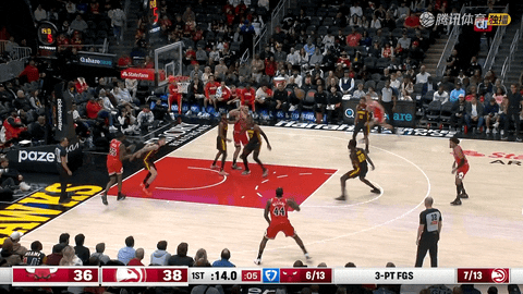 第一节还剩11分44秒时,奥孔古接特雷-杨助攻空切扣篮,打破场上僵局;紧接着在还剩11分29秒时,奥科罗空切挑篮命中予以回应,双方比分来到2:2。第一节还剩11分01秒到9分49秒期间,公牛外线发力,武切维奇、怀特和布泽利斯先后命中三分,将比分从2:2拉开到13:5。