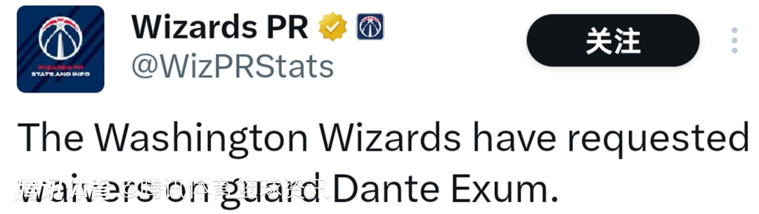 北京时间2月8日,据华盛顿奇才官方报道,球队已经裁掉了此前从独行侠那里交易过来的埃克萨姆。