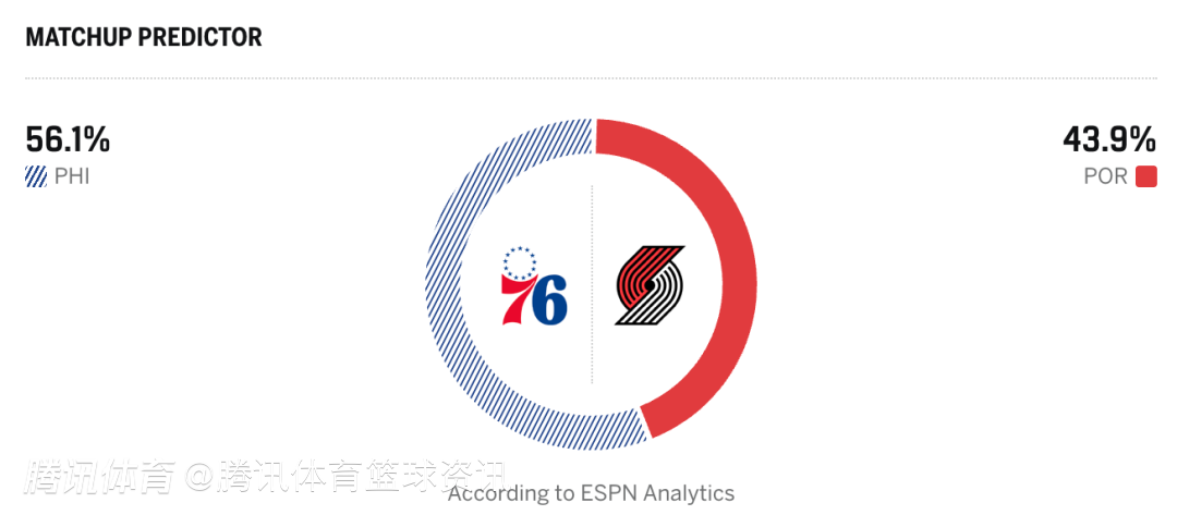 76人56.1%,开拓者43.9%