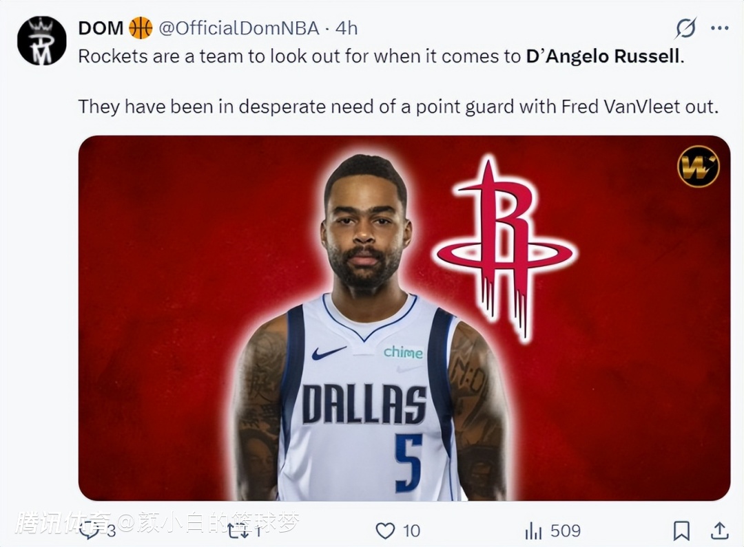 根据美媒Dom的报道,当谈到丹吉洛-拉塞尔这位球员时,火箭队是他值得关注的下家,由于范弗利特的伤病(大概率赛季报销),火箭迫切需要一位控球后卫。